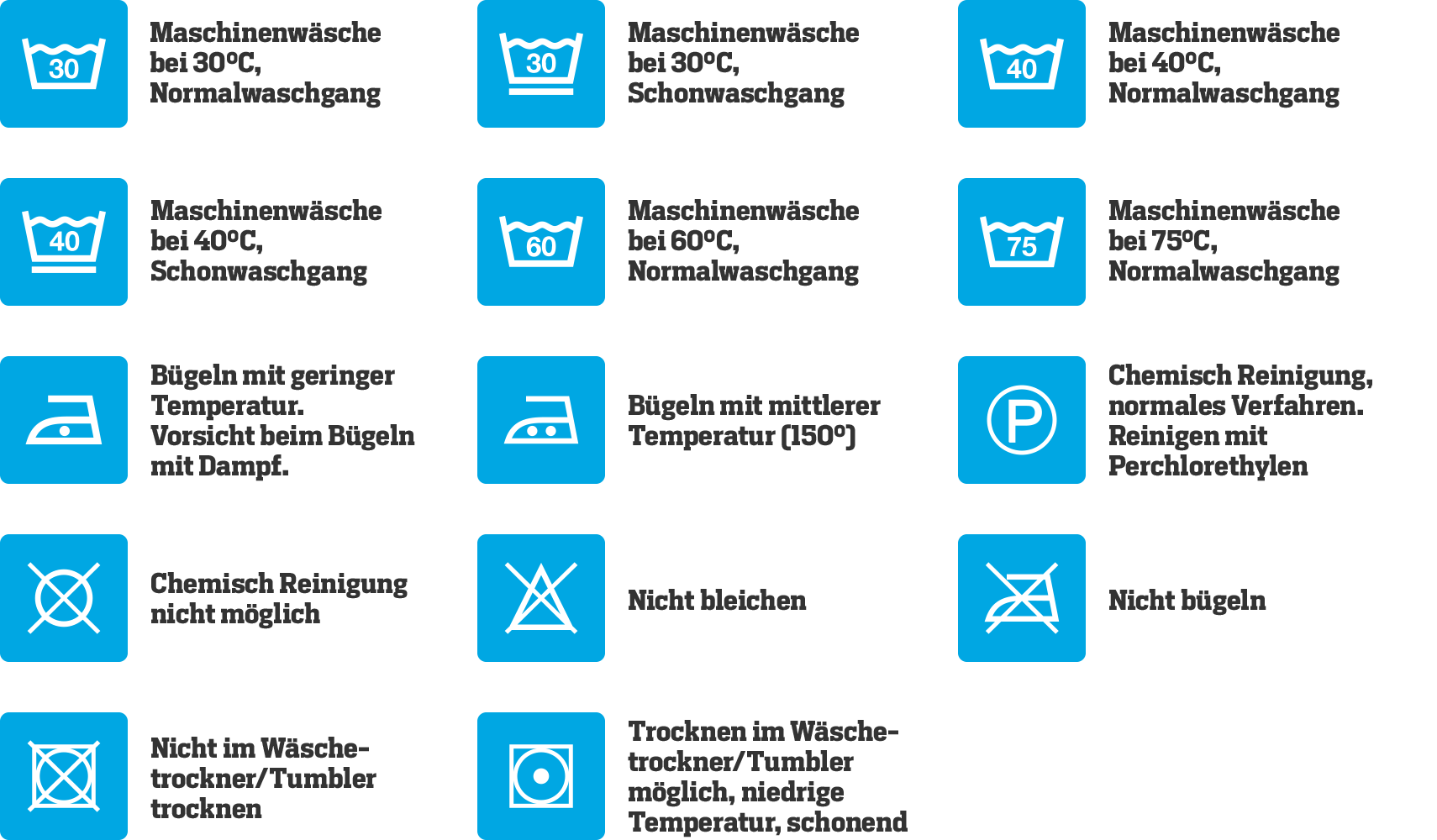 Alle Pflegehinweise und Waschsymbole können Sie hier als PDF herunterladen:
